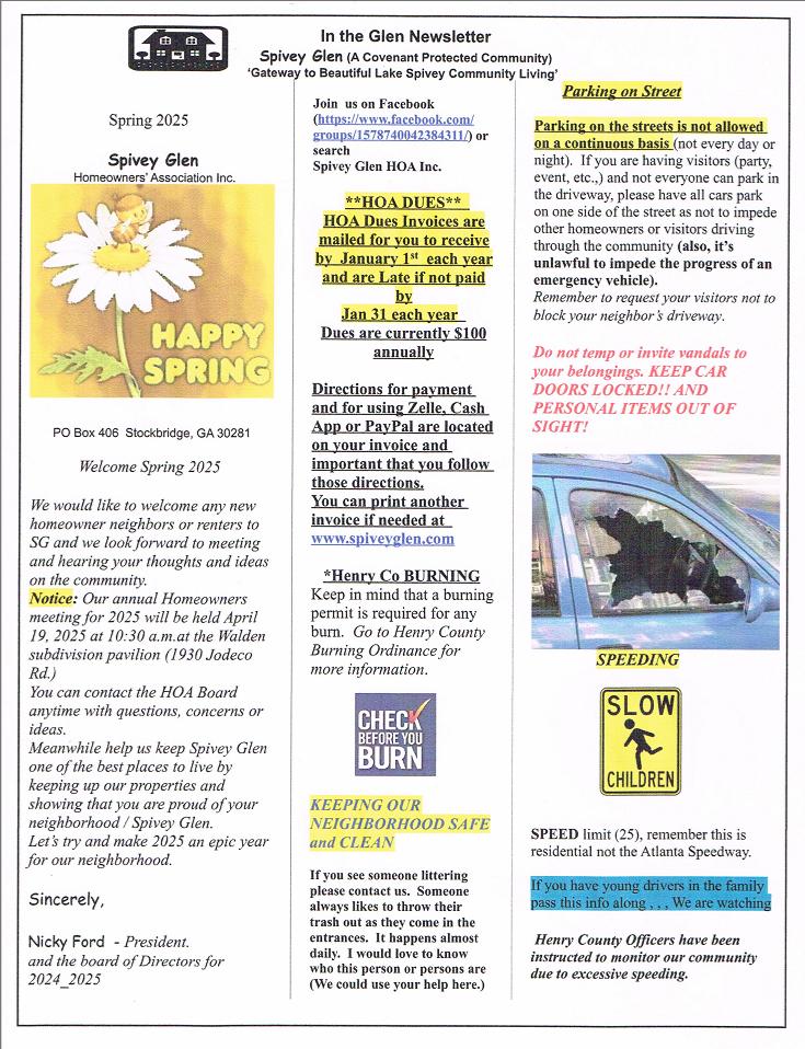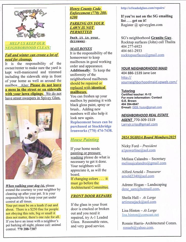 Spring & Summer 2024 - 2025: Neighbors please take time to perform routine maintenance concerning your property. It's courteous, neighborly and it enhances the community, and keeps property values up.